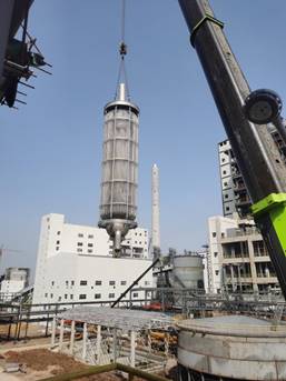 興華科技公司凈化裝置兩臺變換爐內件順利吊裝成功